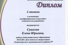 В региональном конкурсе методических пособий педагогов дополнительного образования художественно-эстетического напрвления, проходившем в г. Набережные Челны, педагог Котлярова О.Ю. стала обладателем диплома лауреата III степени, педагог Сушкова Е.Ю. - обладателем диплома I степени.