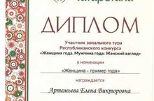 12 февраля в г. Альметьевск прошел зональный тур Республиканского конкурса "Женщина года. мужчина года: Женский взгляд" в номинации Женщина - пример года", в котором приняла участие Артемьева Е.В. - педагог дополнительного образования. 15.02.2016