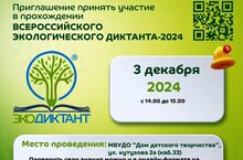 8 декабря 2024 г. с 14.00 - 15.00 МБУДО «Дом детского творчества» вновь станет офлайн-площадкой для написания Экодиктанта.