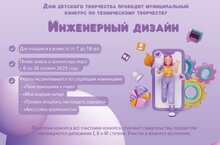 Дом детского творчества проводит муниципальный конкурс по техническому творчеству по компетенции «Инженерный дизайн» для учащихся в возрасте от 7 до 18 лет.