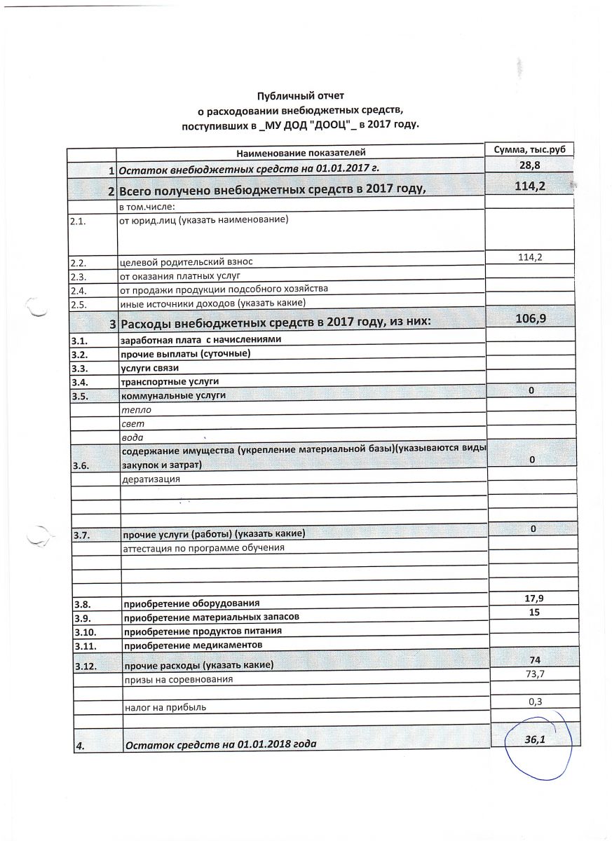 Отчет о поступлении и расходовании внебюджетных средств за 2017год