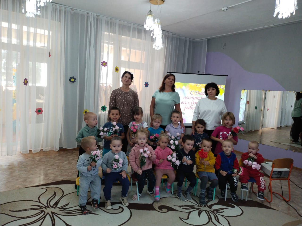 Наши малыши-карандаши поздравили воспитателей с Днём дошкольного работника! Задорные песенки и танцы, добрые слова и комплименты прозвучали в адрес воспитателей и работников детского сада!