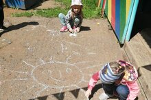 Замечательным продолжением беседы стала творческая мастерская, на которой ребята проявили свои творческие способности – они рисовали солнышки на асфальте.