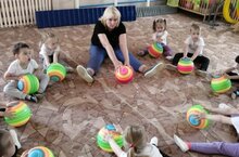 Сегодня в младшей группе детского сада прошел День игр и забав с мячом. Дети с большим интересом играли в разные по сложности игры: «Мяч в кругу», «Прокати и догони», «Лови – бросай». Малыши получили хороший заряд положительных эмоций и отличного настроения. Старшие дети научили играть малышей в свои любимые игры: «Съедобное – несъедобное», «Вышибалы», «Я знаю пять имен….». А также рассказывали друг другу о различных видах мячей и делились своими впечатлениями в изобразительной деятельности. -