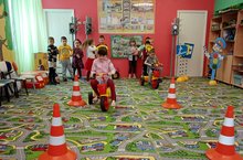 Сегодня в подготовительной к школе группе прошло мероприятие по безопасности дорожного движения "Весёлые старты". Дети закрепили знания по правилам дорожного движения в играх "Светофор", "Классификация транспорта", "Вопрос - ответ". Всё это помогает формировать у детей устойчивые навыки безопасного поведения на улице и дорогах. А также расширяет кругозор детей в области изучения правил дорожного движения.