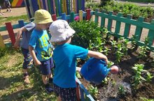 На прогулке мы с детьми не только играем, но еще и наблюдаем за окружающим миром. Очень красиво окрасили детский сад пионы – красивые бутоны розового цвета. Воспитатель средней группы ежедневно вместе с детьми проводит наблюдения за цветами на клумбах детского сада. Во время таких наблюдений беседуют о том, что за цветами надо ухаживать: рыхлить, поливать, убирать сорняки.