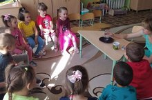 Наиболее полное познание окружающего мира ребёнком происходит через призму доступного и занимательного для него способа переработки информации, то есть с помощью игры. Именно игра положена в основу театрализованной деятельности, подразумевающей импровизацию, оживление предметов, звуков. Сегодня воспитанники средней группы совместно с воспитателем поставили инсценировку "Спор овощей". Ребята постарались проявить артистизм и мастерство перевоплощения.