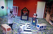 В рамках предупреждения детского дорожного транспортного травматизма в старшей группе прошло развлечение – инсценировка «На лесном перекрестке». Дети охотно играли выбранные роли, предварительно выучив слова и действия героев. Перед представлением ребята изготовили приглашения для своих сверстников и пригласили их в качестве зрителей. Юные артисты рассказали зрителям о правилах дорожного движения через сказку. В конце представления маленькие артисты вместе со зрителями исполнили песню «Светофор». Представление всем очень понравилось.