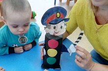 Основными причинами дорожных происшествий является незнание правил дорожного движения или их несоблюдение. С самого раннего возраста необходимо формировать у детей представление безопасного дорожного движения. Поэтому основная цель изучения правил безопасного поведения на улицах – дать детям знания и привить навыки правильного поведения.Сегодня в первой младшей группы прошла игра «Знакомство со Светофором». Целью мероприятия было познакомить малышей со светофором, рассказать для чего он нужен; научиться понимать значение красного, желтого, зеленого сигналов, а также закрепить полученные знания.