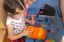 Современная жизнь наполнена движением и темпом, поэтому улица всегда «полна неожиданностей». Дети активны, они любознательны и любопытны, им трудно устоять на месте. Однако на улице прежде всего детям нужно быть очень осторожными, чтобы не стать жертвами дорожно-транспортных происшествий. А как это сделать? Быть внимательными и осторожными на улицах города детей должны научить родители и педагоги дошкольного образования. Сегодня воспитатель старшей группы провела с детьми сюжетно-ролевую игру «Автосервис», где дети познакомились с профессиями слесаря, заправщика, автомойщика, шиномонтажника, кассира. Цель игры: Предупредить детский дорожно-транспортный травматизм через организацию сюжетно-ролевой игры «Автосервис». Воспитатель вместе с детьми изготовила макет автомойки, АЗС. В середине игры включился в игру инспектор ДПС (воспитатель), который проверял легковые машины на наличие детского кресла, ремня безопасности, аптечки и огнетушителя. Таким образом закрепили знания детей о технике безопасности. Дети с удовольствием играли в игру, а во второй половине дня играли самостоятельно.