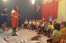 Сегодня в первой младшей группе прошел тематический досуг на тему "С мамой за руку идем!". В гости к детям пришел Медвежонок, который рассказал о необходимости соблюдать правила безопасного поведения на дорогах, а именно о необходимости пересекать проезжую часть дороги держась за руки взрослых. Он также показал что помощниками в пересечении дороги могут стать Светофор и Пешеходный переход. Однако, не смотря на это, ребята и их родители все равно должны смотреть по сторонам прежде, чем начать переходить дорогу.