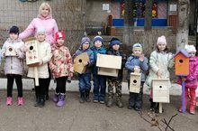 Смастерили мы скворечник.В нашем детском саду состоялась акция "Новоселье у скворца". В рамках акции воспитанники вместе со своими родителями смастерили скворечники и повесили их на территории детского сада. Участники акции старались, чтобы домики для птиц были не только надежными, но и красивыми и поэтому украшали их рисунками и резьбой. Теперь на территории нашего детского сада висят двадцать замечательных скворечников и ждут новоселов.