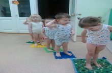 Так как малыши являются основной группой риска для проявления у них простудных заболеваний, начиная с первой младшей группы воспитатели проводят работу по закаливанию. В своей работе они используют нестандартное оборудование: такое как дорожки здоровья, выполненные в различной технике с использованием различных подручных материалов. Именно планомерная, грамотно выстроенная работа по оздоровлению детей способствует тому, что заболеваемость в данной группе имеет минимальный процент, несмотря на то, что дети данного возраста наиболее подвержены простудным заболеваниям.