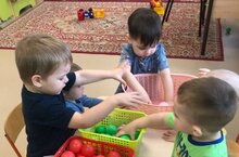 Дидактическая игра с младшей подгруппой "Собери по цветам".