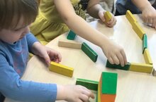 Цель: Продолжать развивать умение сооружать элементарные постройки по показу и слову воспитателя, пользоваться строительным материалом для самостоятельного сооружения несложных построек в игре. -
