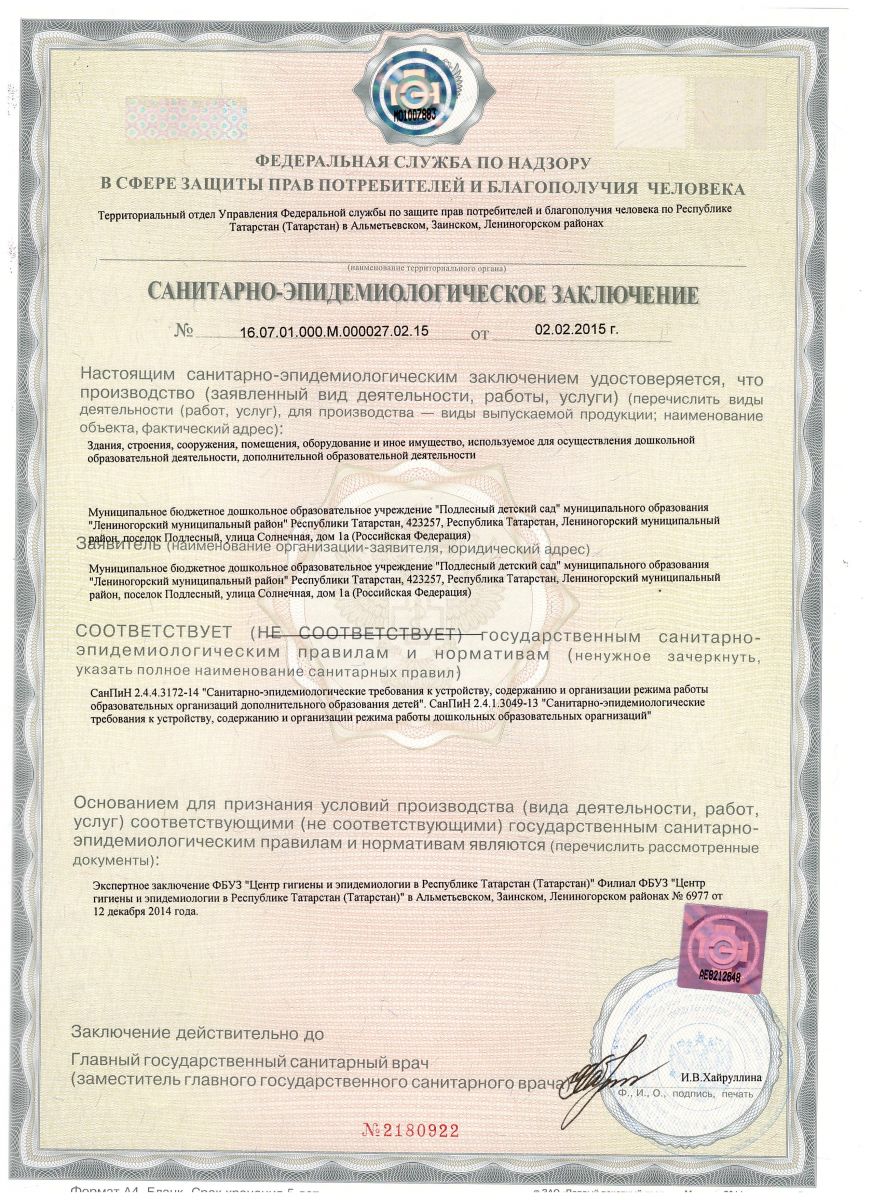 Муниципальное бюджетное дошкольное образовательное учреждение «Подлесный детский сад" муниципального образования "Лениногорский муниципальный район" РТ