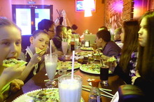 5 клашки нашей школы вместе со своим классныйм руководителем Глуховой Милаушой Минахметовной отметили первые дни каникул веселым катанием на коньках и поеданием пиццы.