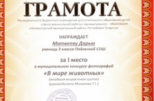 1 место – Матвеева Дарья, 3 класс, Подлесная СОШ (рук. Миназова Т.Г.);