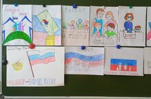 Ребята 7, 9 классов организовали выставку рисунков "Всей семьей на выборы".