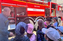 5 июня 2023 года в пришкольном лагере «Колокольчик» прошел «День открытий». Ребята побывали в пожарной части №11, где им рассказали о героической профессии – пожарный. Ребята узнали о важных качествах, котрыми должны обладать пожарные, чтобы их работа получилась слаженной. Ребятам показали пожарную технику, показали как и чем тушат пожар и рассказали много интересного об их работе. Затем они побывали в парке Юбилейный, на детской площадке побегали, попрыгали вдоволь. День наш получился плодотворным и полезным!