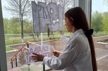 Учащиеся 5,9 класса под руководством учителя родного языка Фарраховой Г.Р. украсили #ОкнаПобеды