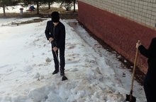 Много снега намело в 2018 году. Дружина добрых дел готовится к Всероссийскому субботнику. Чтобы навести чистоту к первомайским праздникам, нужно сначала раскидать снег. Ребята среднего и старшего звена активно ведут работу по раскидыванию снега.