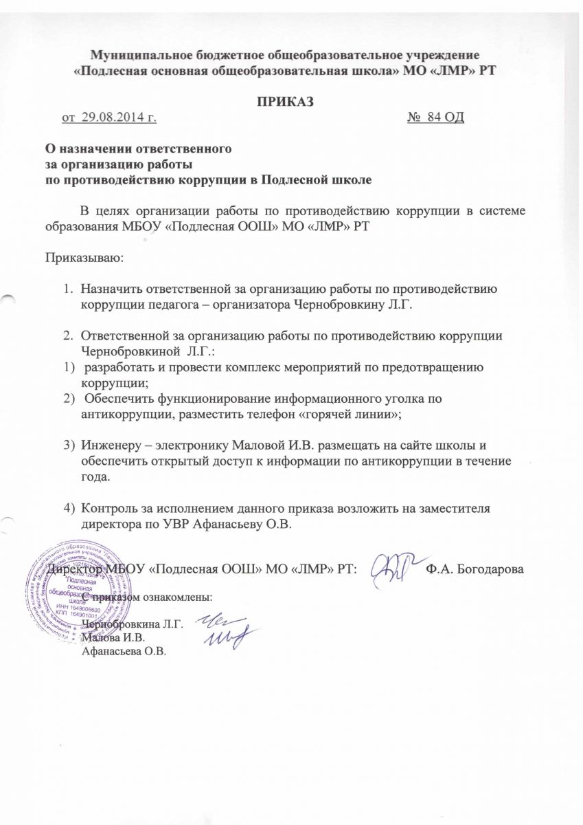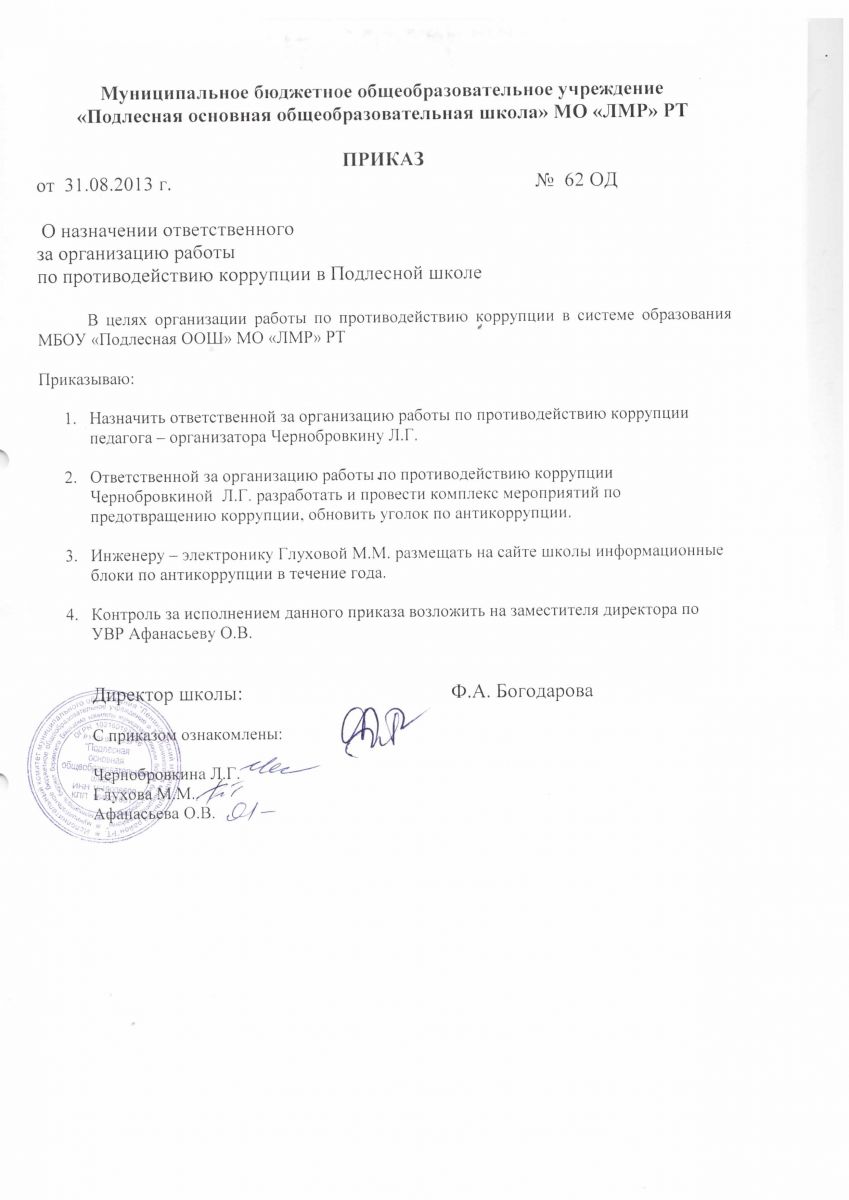 О назначении ответственного за организацию работы по противодействию коррупции в Подлесной школе.jpg