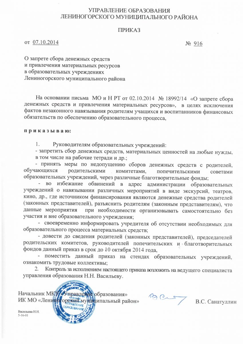 Приказ о недопущении незаконных сборов денежных средств.jpg