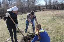 27 апреля учащиеся 10 класса участвовали в природоохранной акции «День посадки леса». На территории школы были посажены саженцы сосен. В прошлом году не все саженцы прижились, некоторые замерзли или высохли. В этой акции учащиеся принимают третий год.