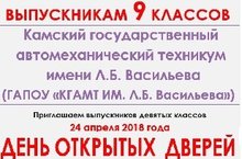 ДЕНЬ ОТКРЫТЫХ ДВЕРЕЙ в Камском государственном автомеханическом техникуме имени Л.Б. Васильева (ГАПОУ «КГАМТ ИМ. Л.Б. Васильева») (скачать объявление)