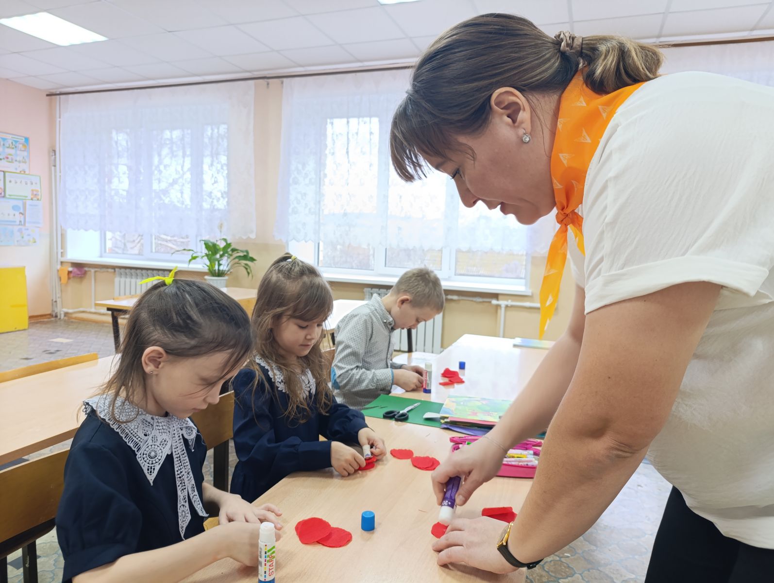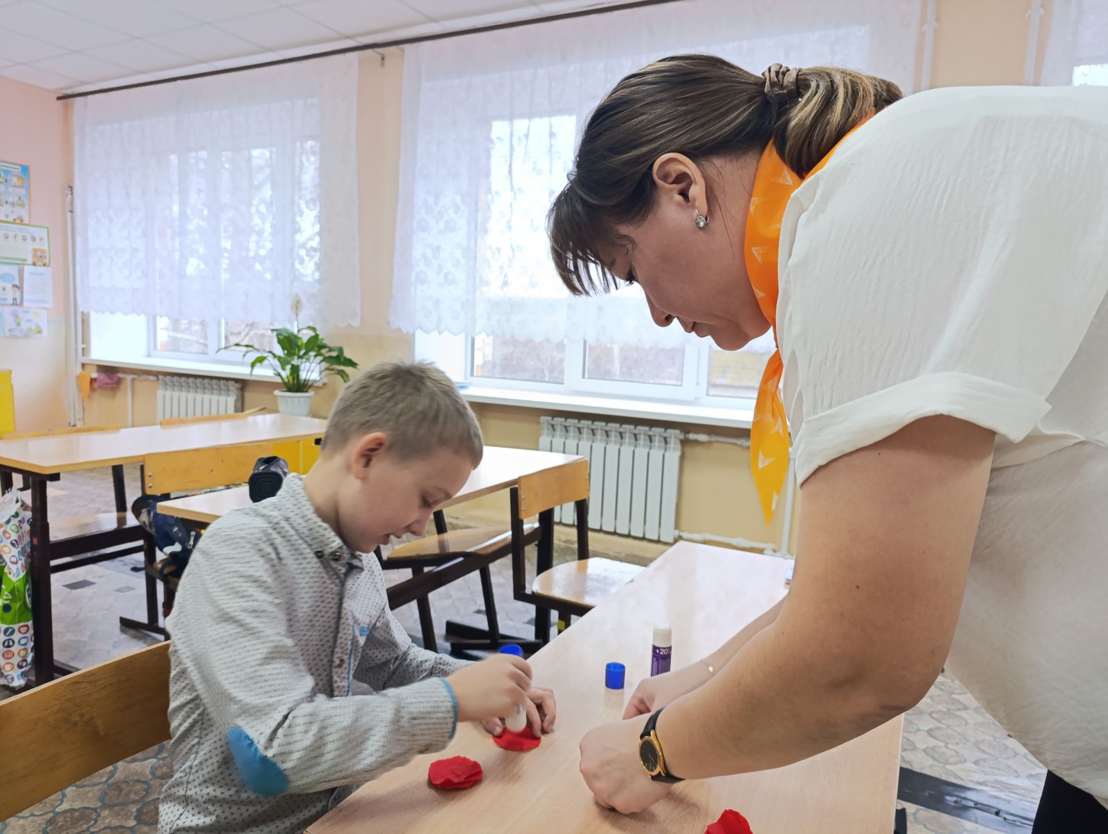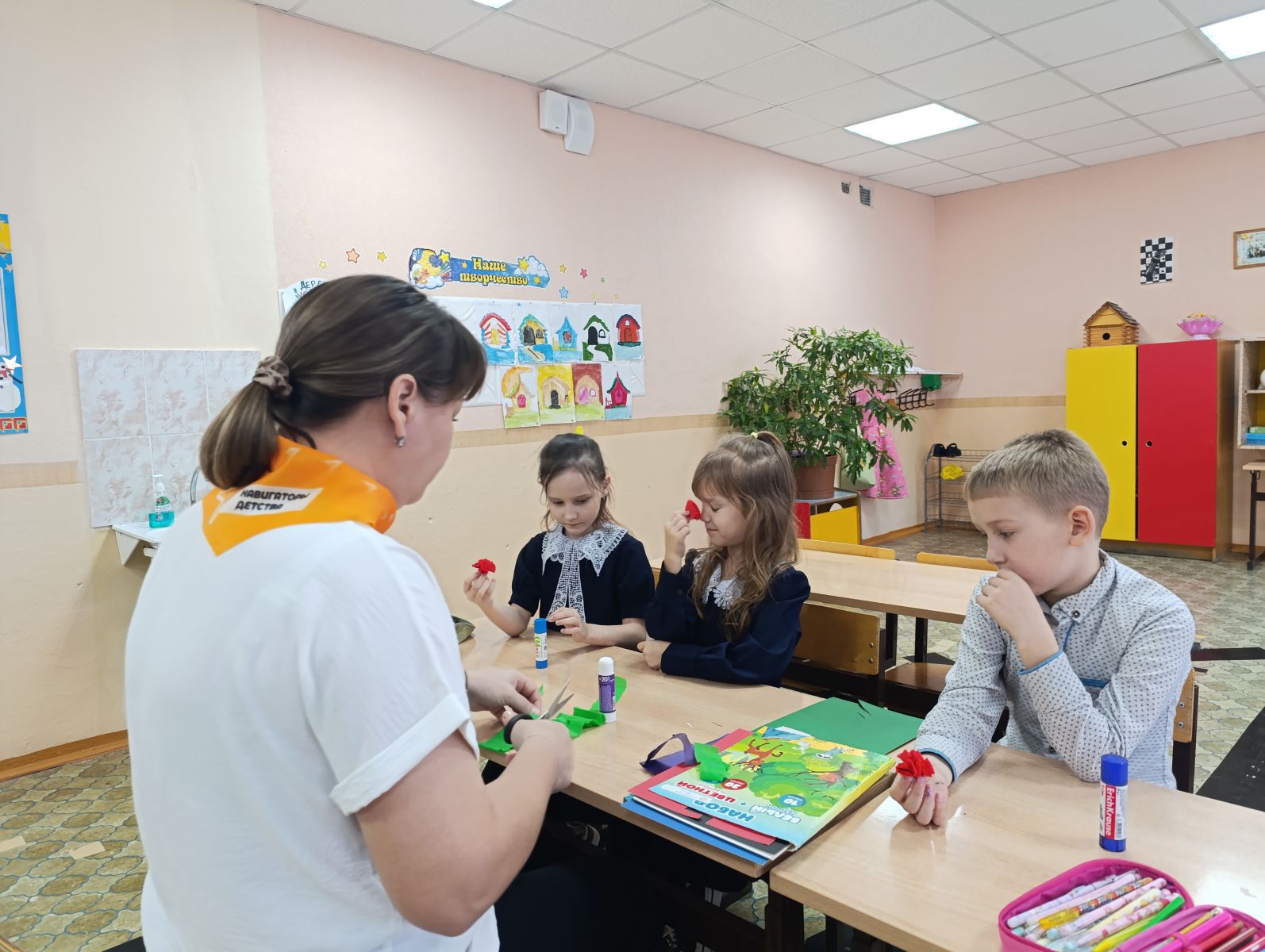 2. Мастер-класс. Школьники своими руками изготовили красные гвоздики — традиционный цветок памяти и скорби. Этот творческий процесс помог ребятам проникнуться значимостью предстоящей церемонии.