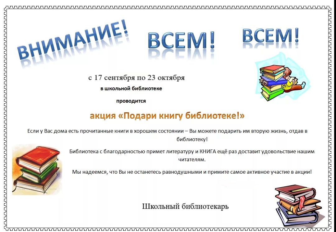Акция "Подари книгу библиотеке!"