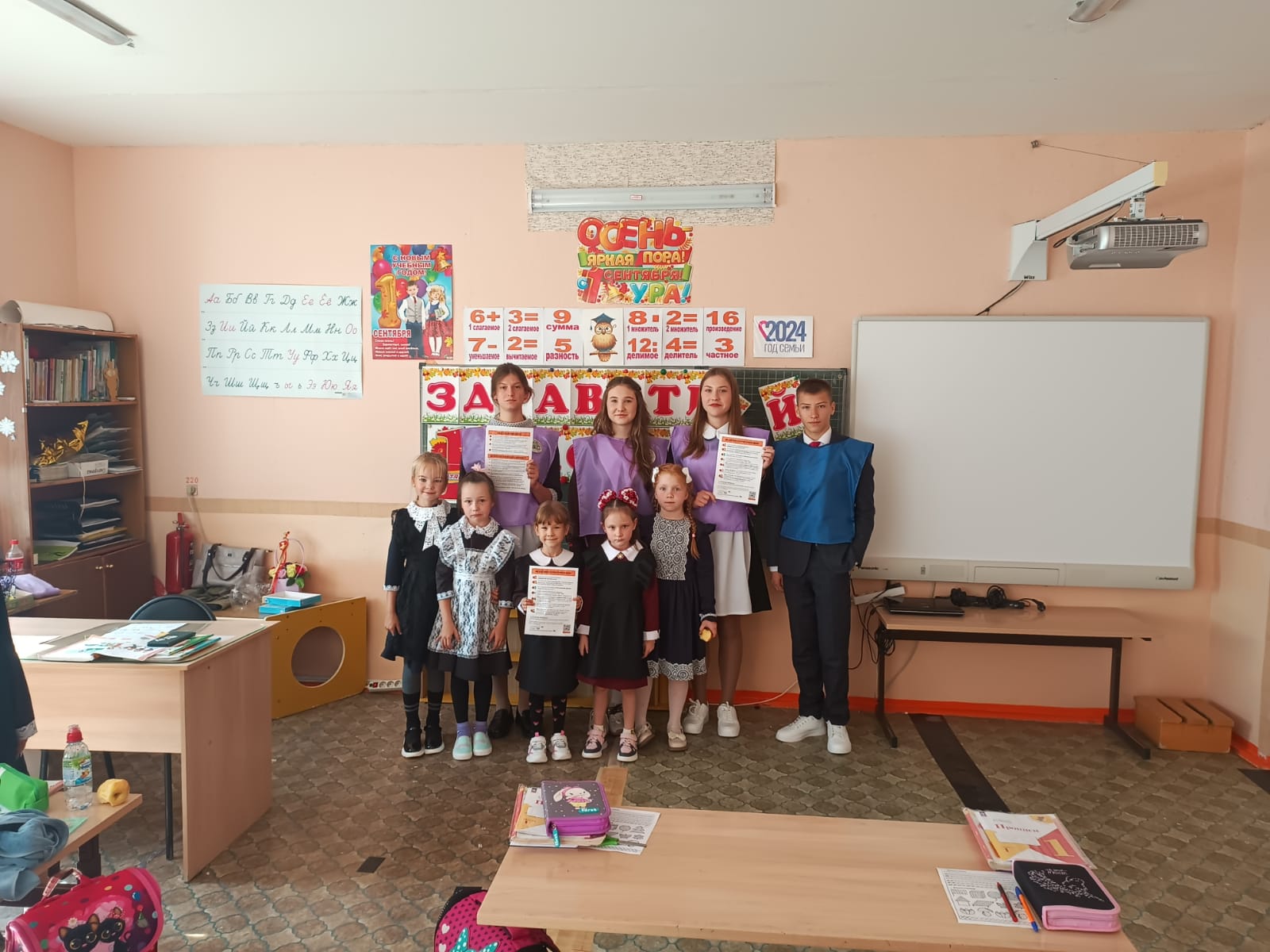 3 сентября в Старокувакской школе советником директора по воспитанию совместно с педагогом-организатором была проведена общешкольная линейка "Скажем терроризму - НЕТ!", приуроченная ко Дню солидарности в борьбе с терроризмом.