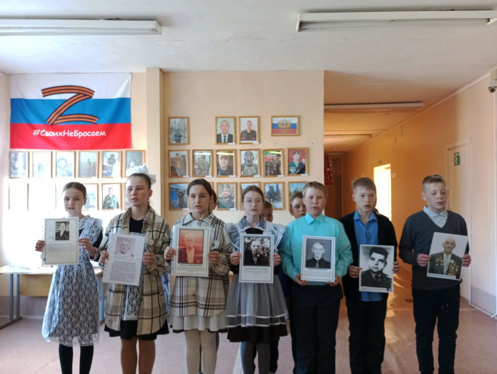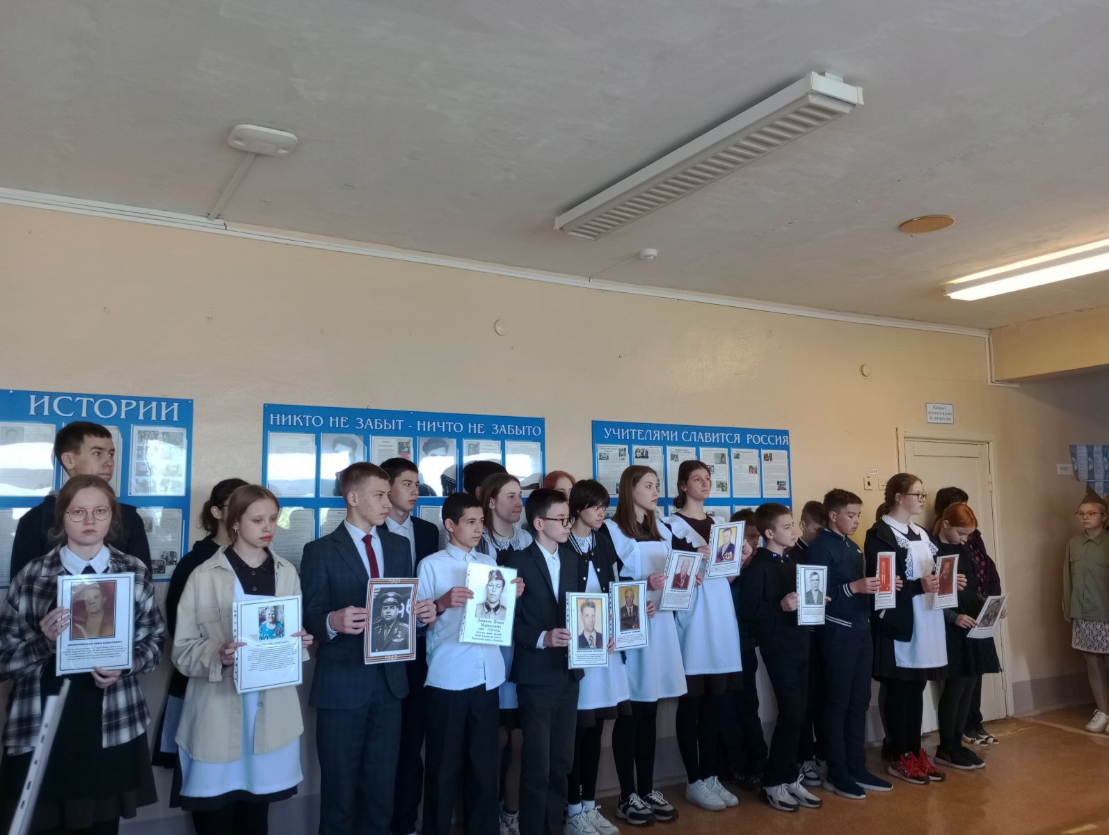 6 мая в нашей школе прошла акция «Бессмертный полк» в память о погибших в Великой Отечественной войне. Все собралась вместе, чтобы почтить память родственников, защищавших Отечество от великой угрозы. Ребят объединило чувство гордости за своих дедов, прадедов, бабушек и прабабушек.