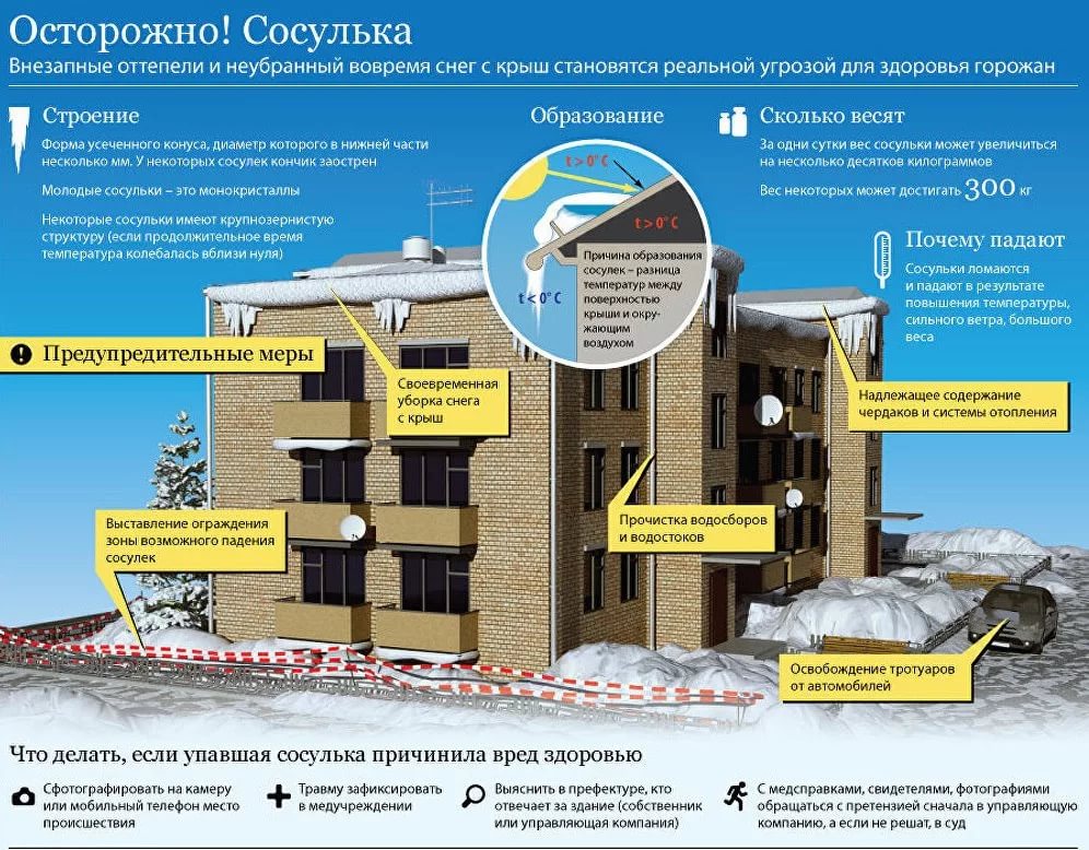 - Угадать тот самый момент, когда сосулька решит, что висеть ей уже надоело, совершенно невозможно. И если Вы думаете, что ледяная сосулька не может причинить большой вред, то очень сильно ошибаетесь.