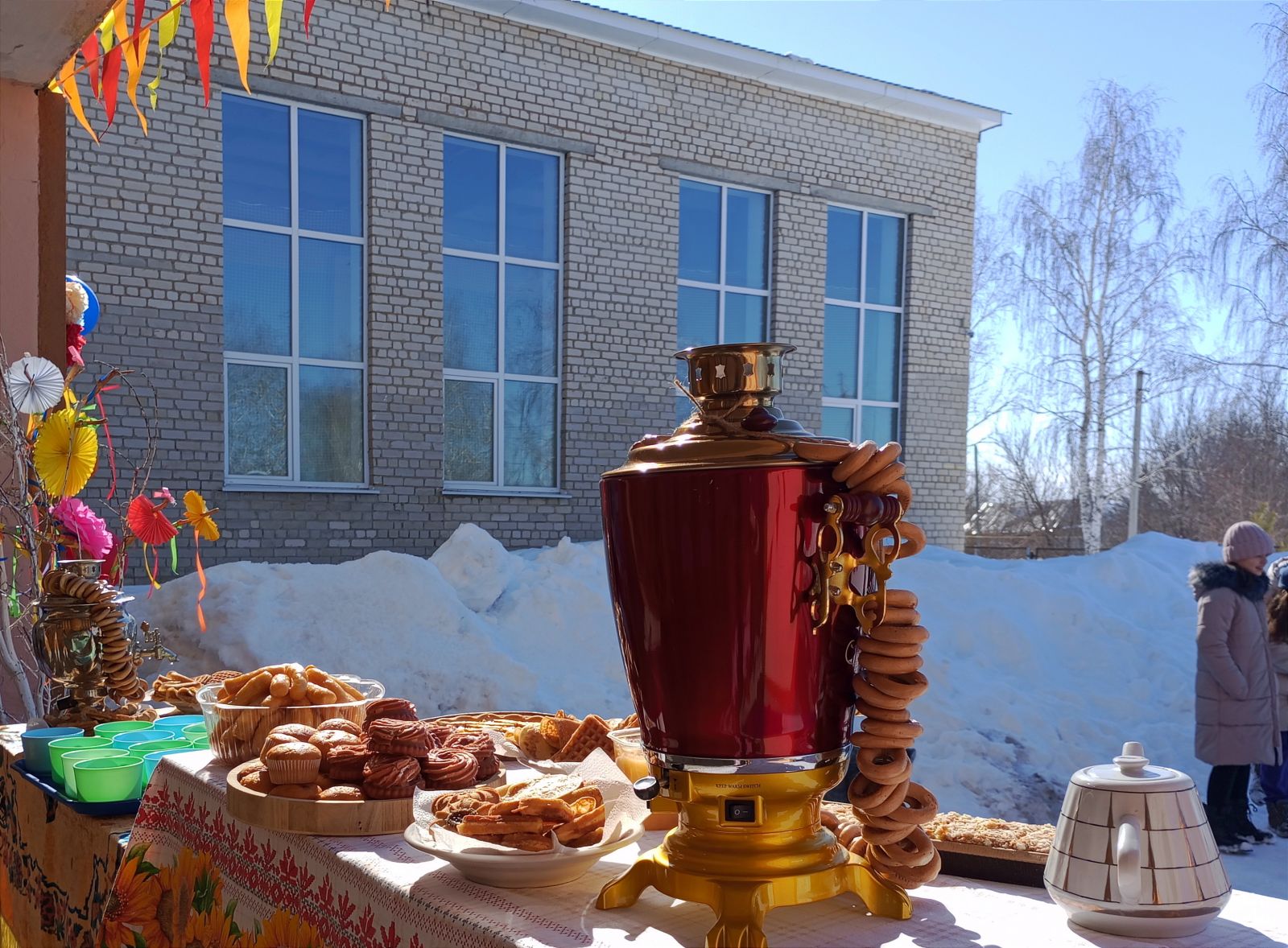 Праздник закончился чаепитием: поеданием вкусных и ароматных блинов, пирогов и сладостей. Праздником все остались довольны! -