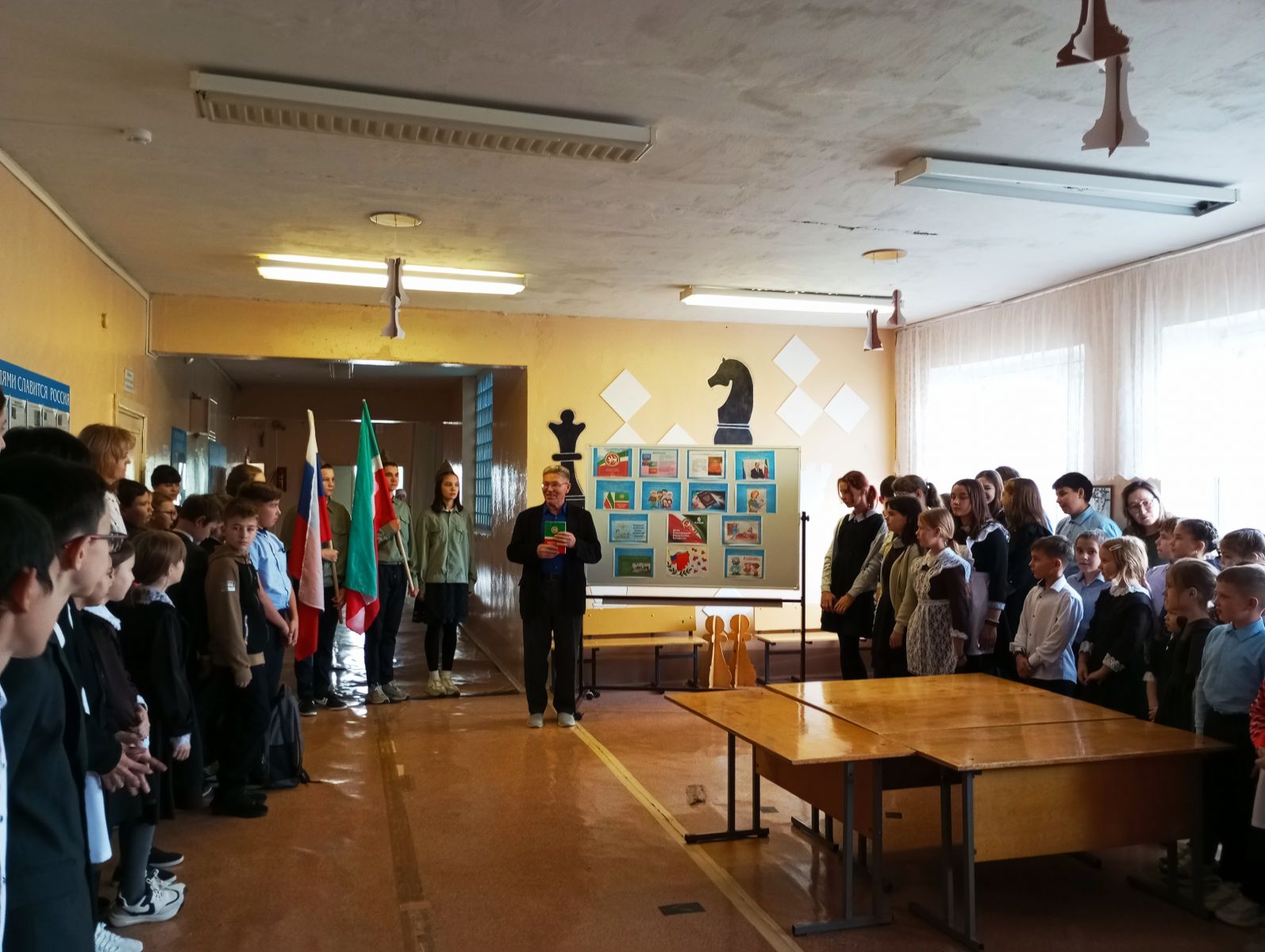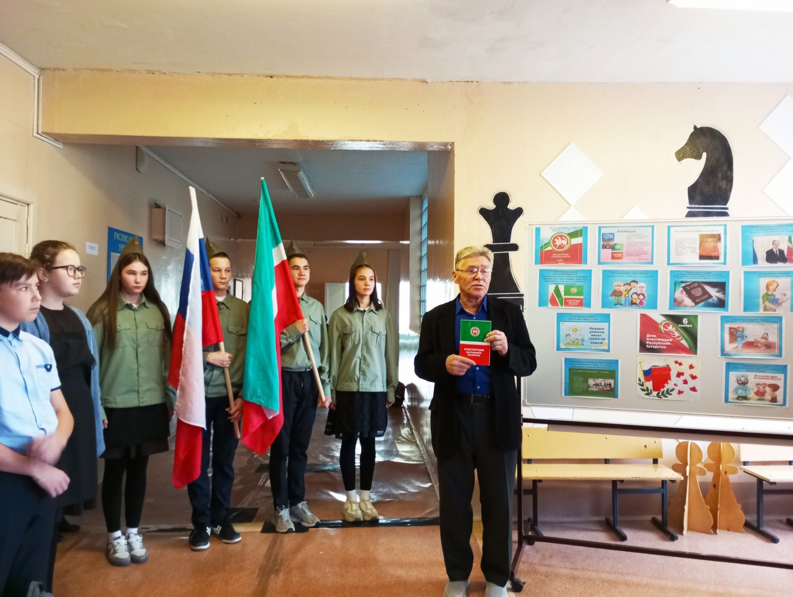 7 ноября в нашей школе, прошла общешкольная линейка, посвященная «Дню Конституции Республики Татарстан». Учитель истории Трофимов Л.В. рассказал о создании нашей конституции и рассказал интересные факты о ней. Так же был оформлен информационный стенд: «День Конституции Республики Татарстан». Учащиеся с удовольствием изучили информацию о конституции Республики Татарстан в ярких картинках.