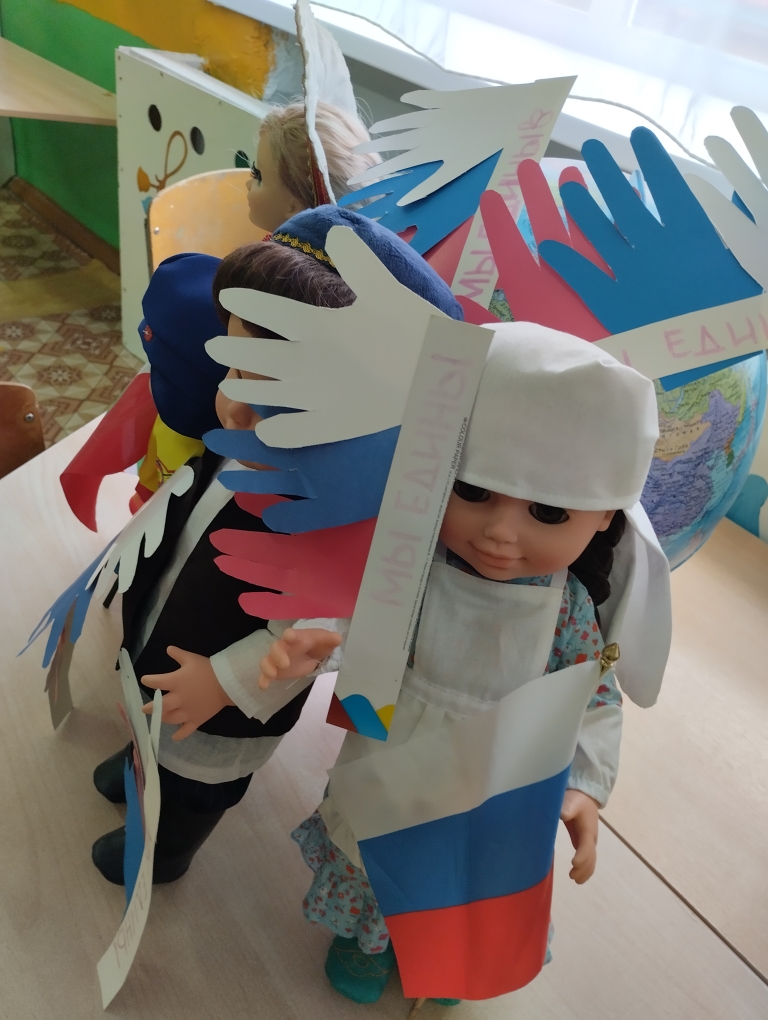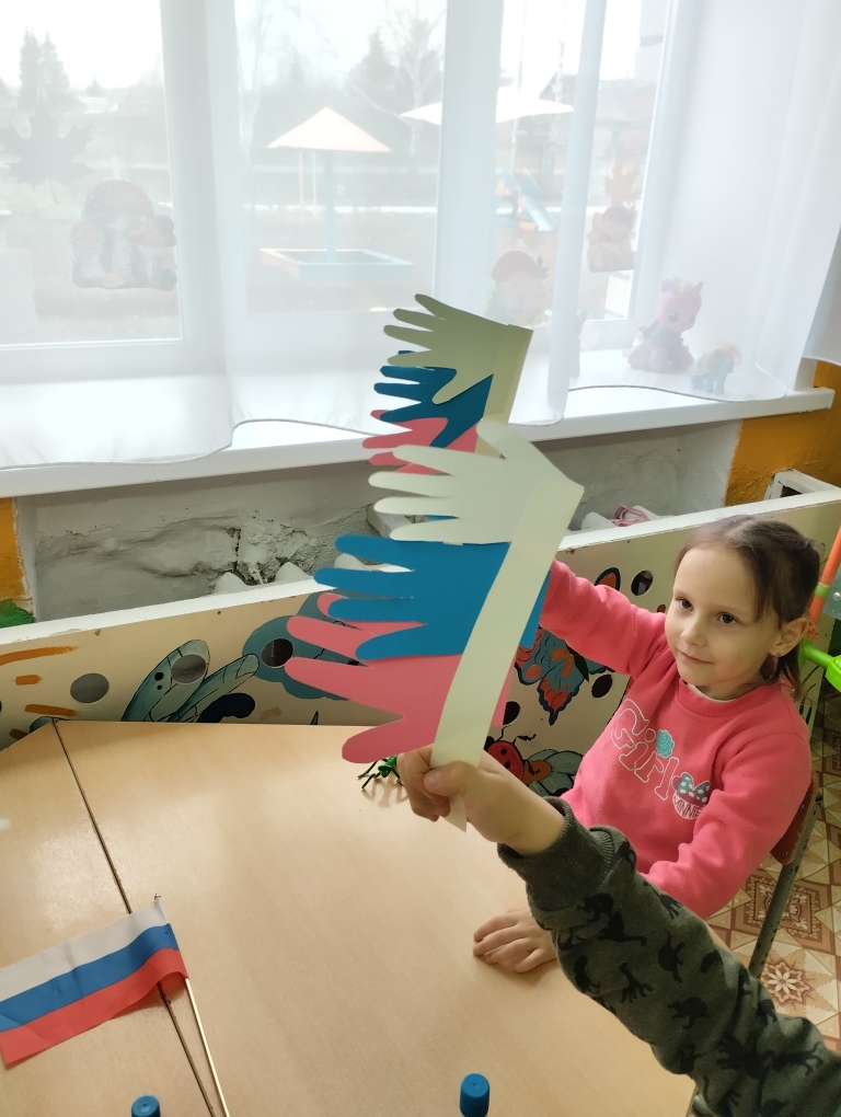 Аппликация на тему. "Когда мы едины , мы Непобедимы".На занятие мы знакомим детей с праздником, даём общее представление о празднике, его истории возникновения праздника.У ребят происходит формирование понятия о России , воспитываются, гражданские чувства , любовь к Родине. Россия единая,могучая,бескрайная,гостеприимная- протягивает руку дружбы и раскрывает свои объятия всем народам кто пожелает жить на земле мирно и счастливо.