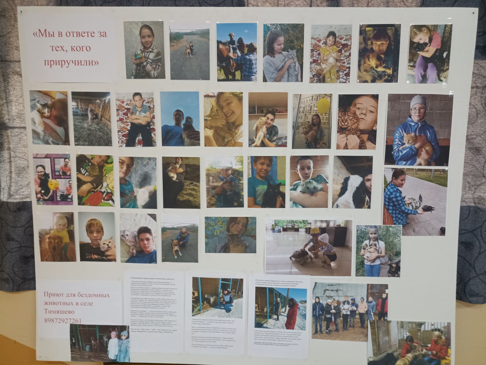 - Оформили стенд «Мы в ответе за тех, кого приручили» где ребята предоставили фото со своим питомцем, а также была предоставлена информация о Лениногорском приюте для животных.