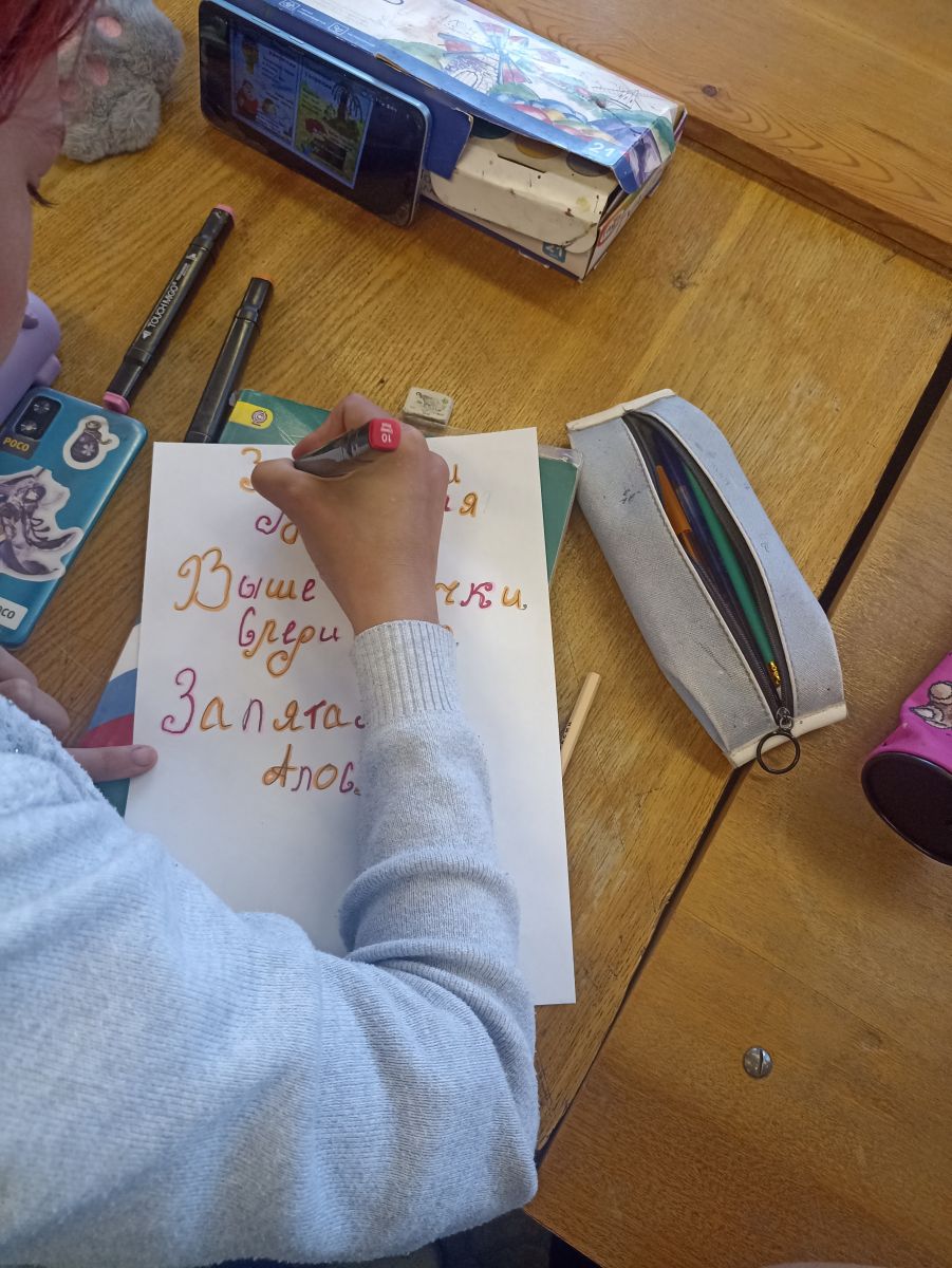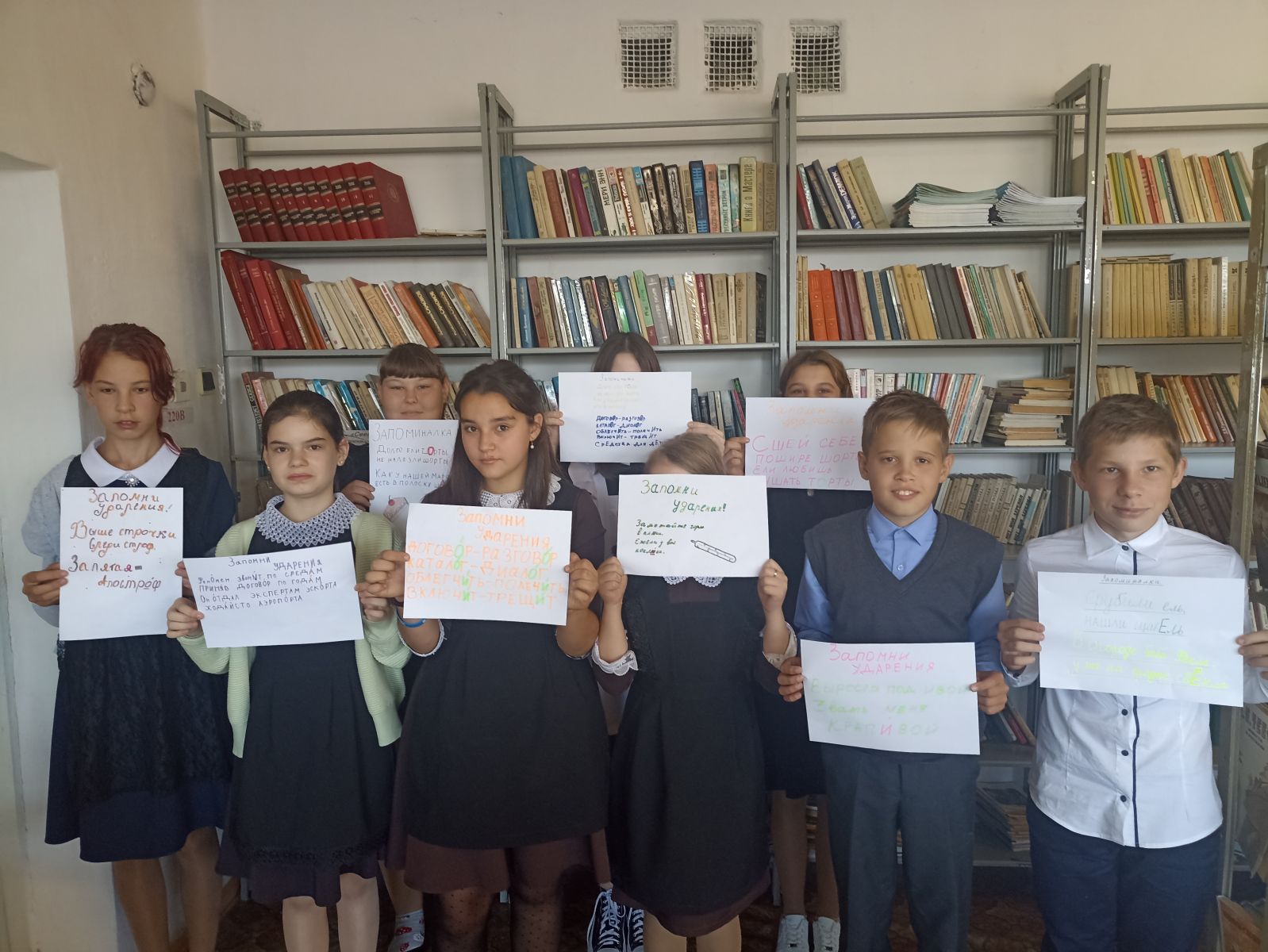 С учащимися 7 класса выполнили афиши «Как правильно?», «Сложные ударения в русском языке» с фразами-помощниками, благодаря которым запомнить правила гораздо проще, и подарили их учащимся 5 класса.