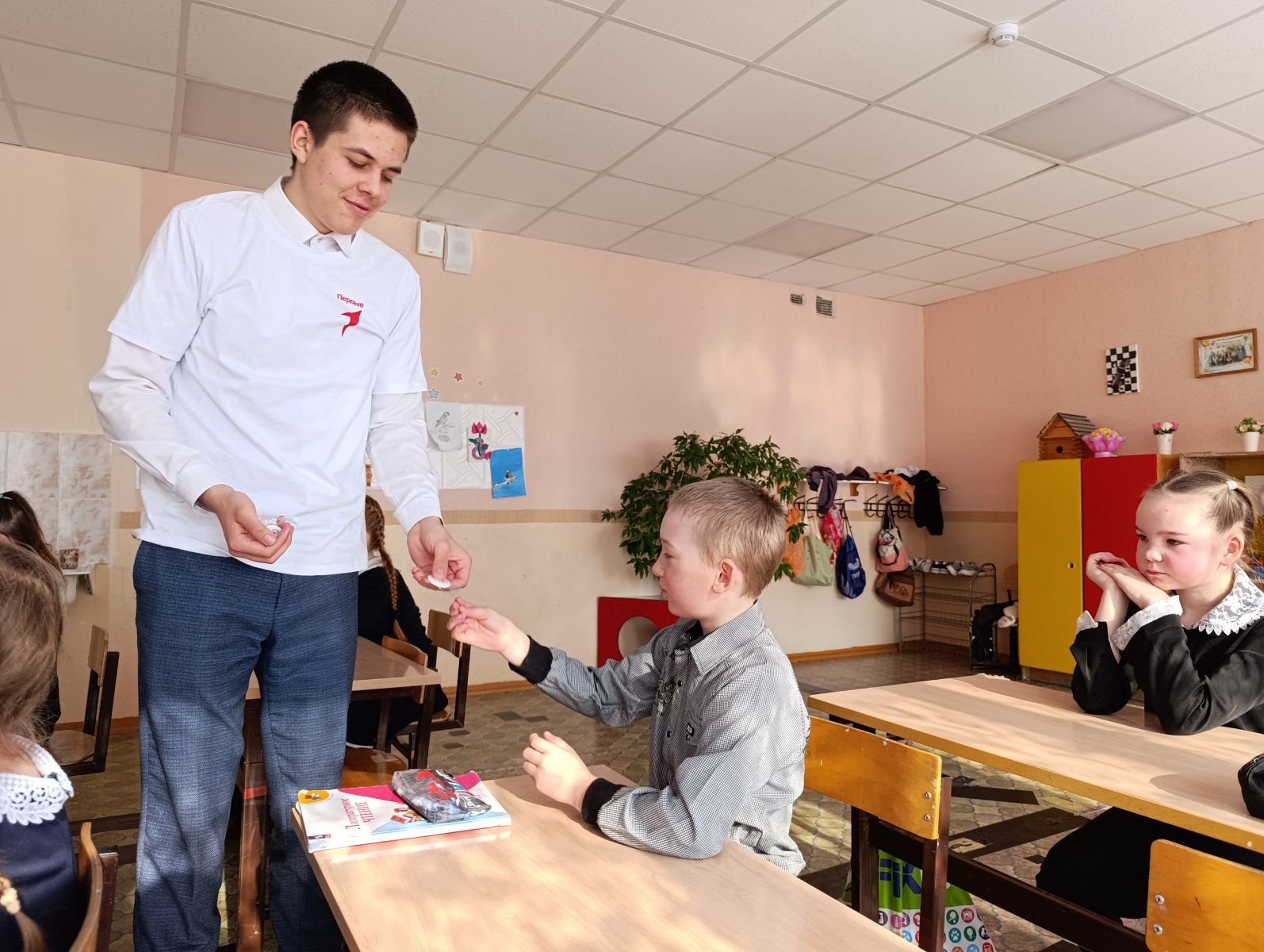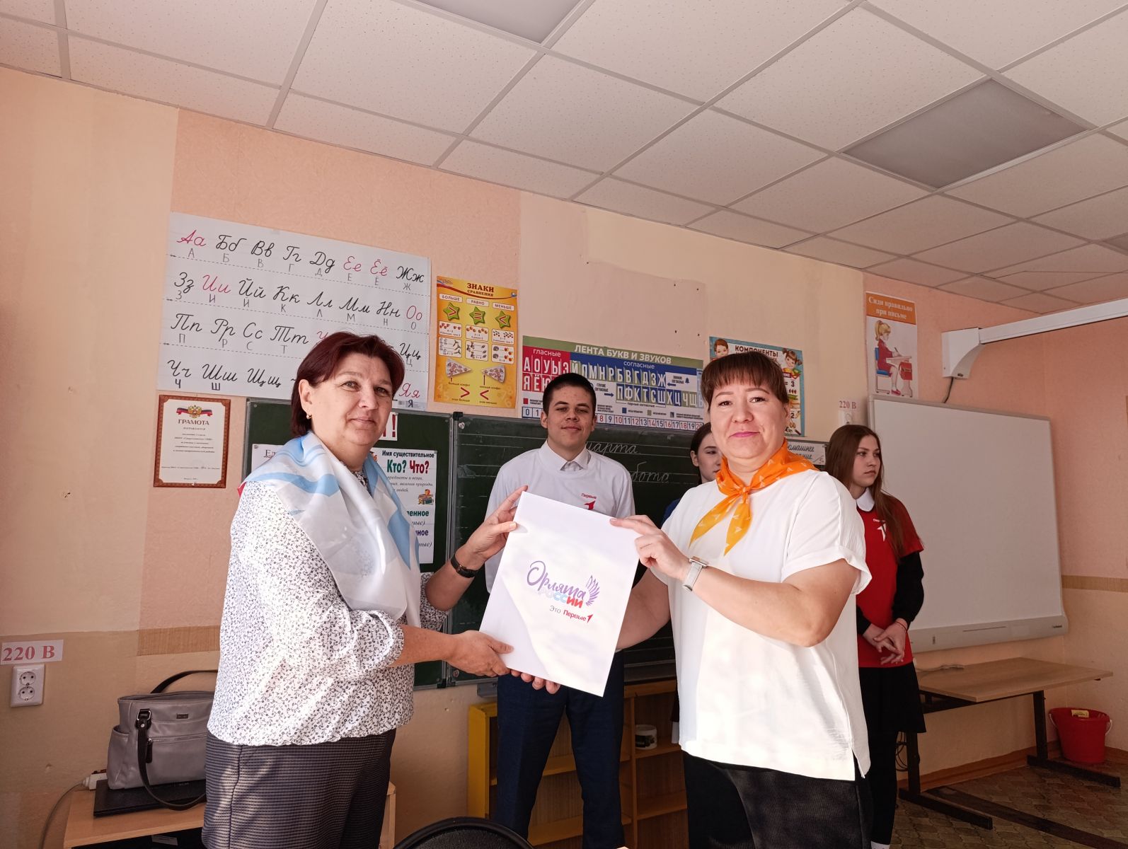 В МБОУ "Старокувакская СОШ " активисты отряда движения «Первых» вместе с советником директора по воспитанию провели вручение подарков для ребят, которые в прошлом году были посвящены в «Орлята России».