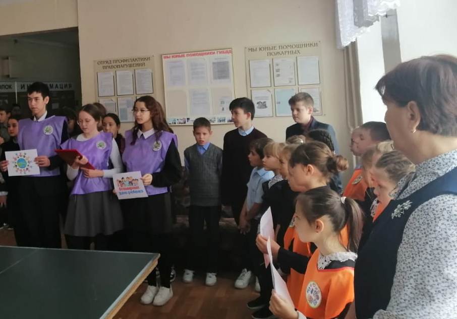 Так же на линейке выступил школьный отряд по профилактике правонарушений. Профотряд познакомили школьников с датой 20 ноября «Всемирный день ребенка».