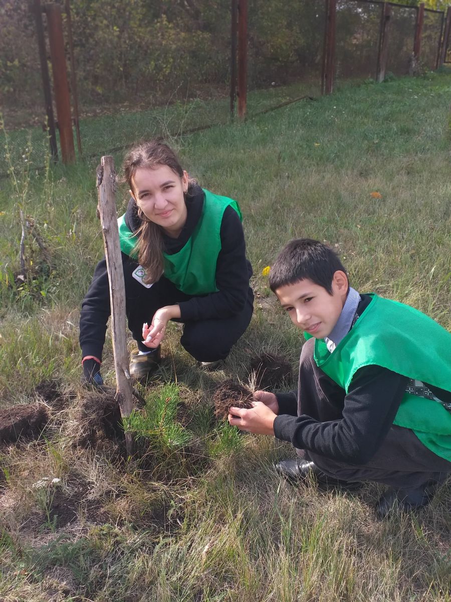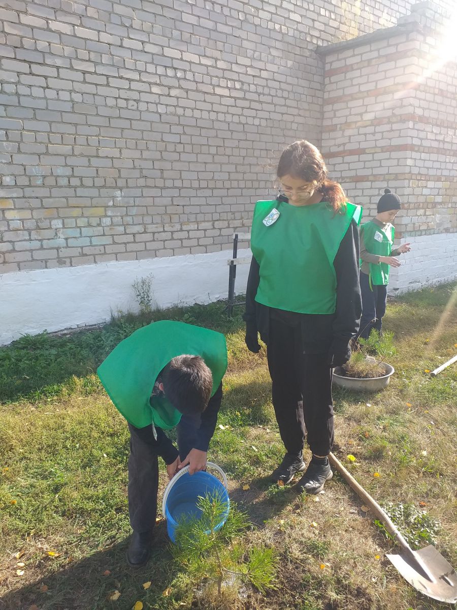 Учащимися школьного отряда «Юные экологи» в рамках проекта «Лес Победы» были посажены саженцы сосен около памятника «Неизвестный солдат».