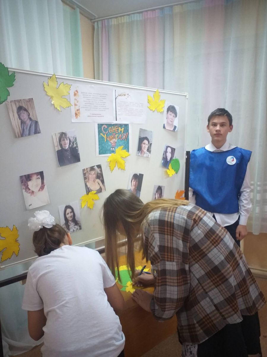 Россия с 1994 года отмечает День учителя по всемирному календарю — 5 октября. В этот день учащимися РДШ была проведена акция «Поздравь своего учителя». Учащиеся оставляли свои пожелания для учителей на специльно оформленных стендах на первом и втором этажах.