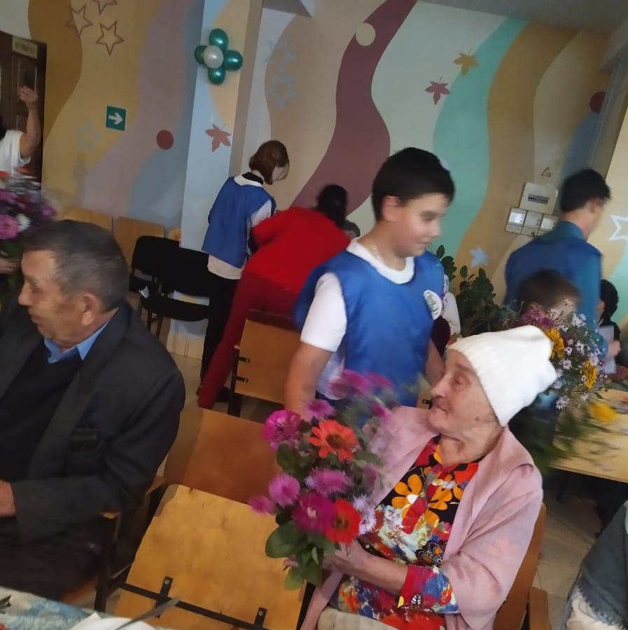 Учащиеся нашей школы приняли участие на празднике «Годы золотые», организованным сельским ДК. Волонтеры учащиеся поздравили старшее поколение и подарили им открытки и цветы.