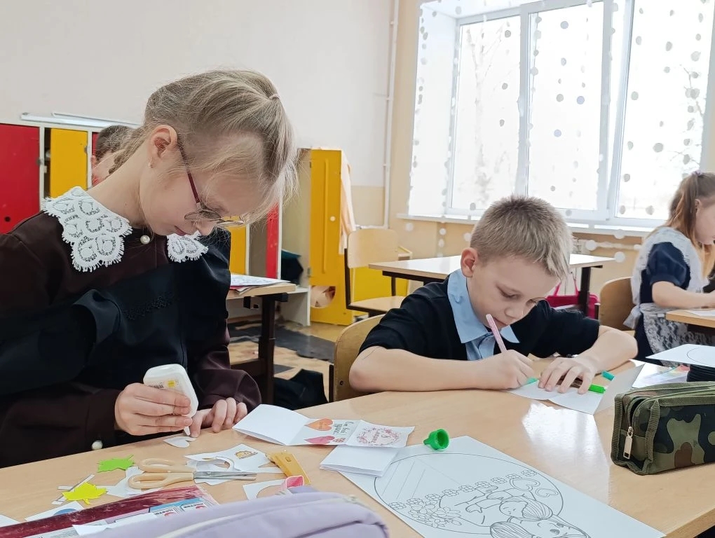 Ученики 2 класса изготовили открытки, чтобы порадовать своих мам. Мероприятие прошло в тёплой и дружеской атмосфере, подарив детям радость творчества.