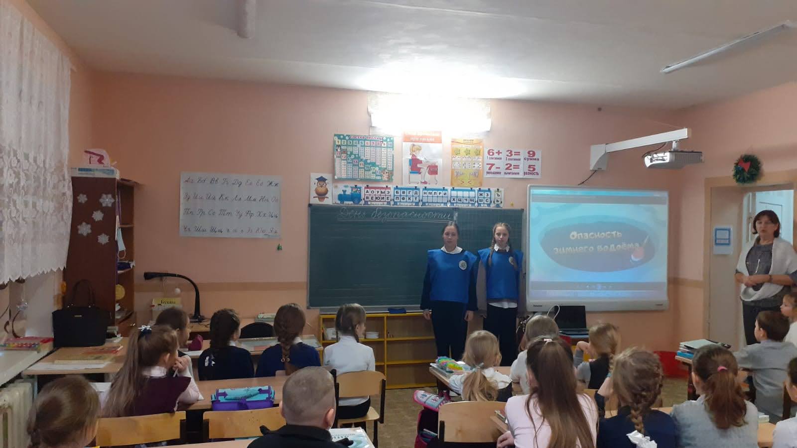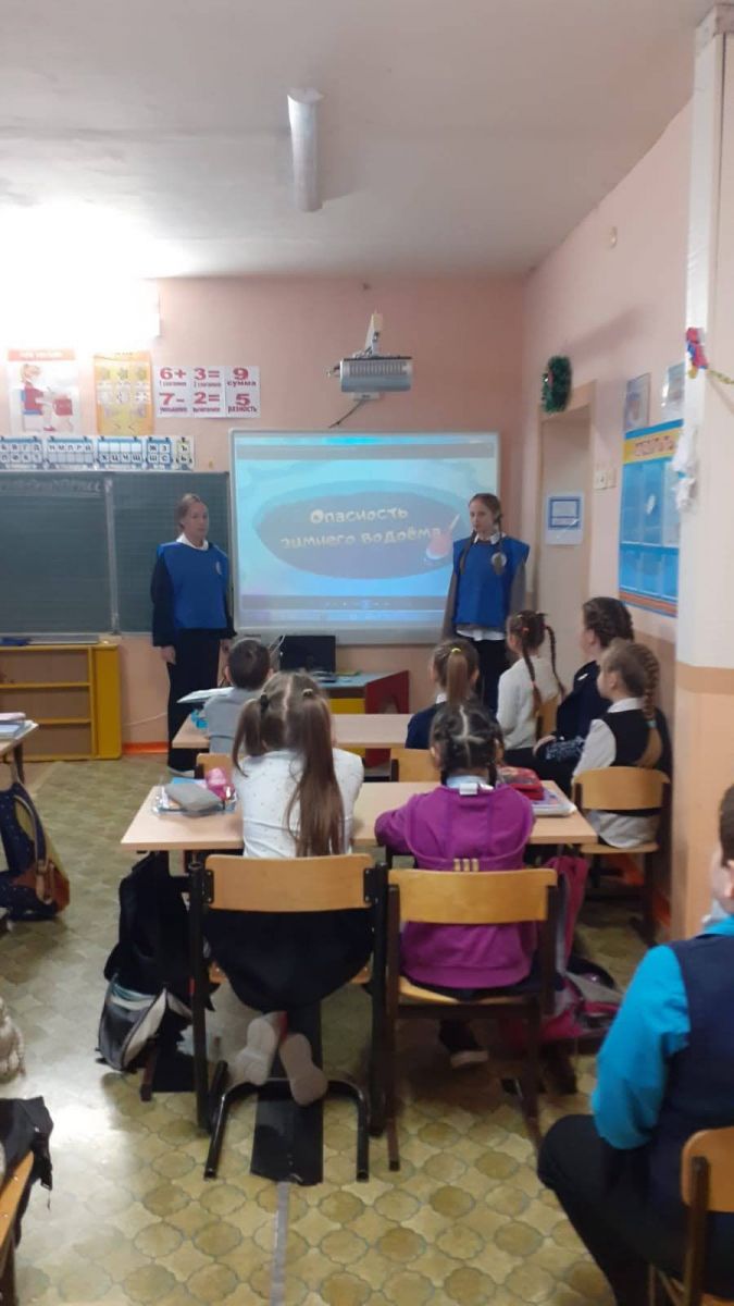 13 января школьниками РДШ в начальных классах были проведены пятиминутки безопасности. Участники РДШ напомнили ученикам 1-4 классов о правилах безопасности дома и на зимних водоемах. Ребята посмотрели мультфильмы, потом отвечали на вопросы. -
