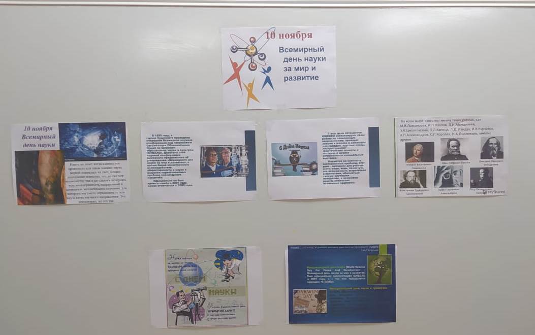 Всемирный день науки за мир и развитие или проще — Всемирный день науки отмечается ежегодно 10 ноября с целью повысить осознание общественностью во всем мире пользы науки, а также служит напоминанием международному сообществу о необходимости использования научно-технических достижений в интересах мира и развития на благо человеческой цивилизации.Учителем физики был оформлен информационный стенд, посвященный этой дате.