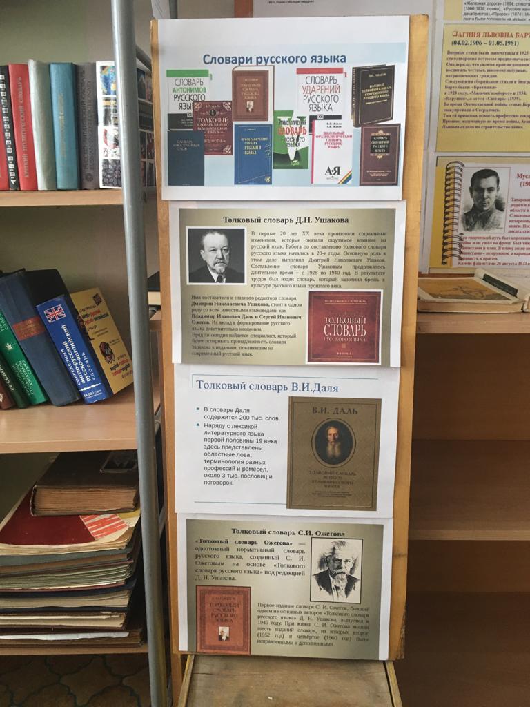 С 8 по 13 ноября в школьной библиотеке была оформлена выставка словарей. Ребята познакомились со словарями разных авторов, с их типологией. -