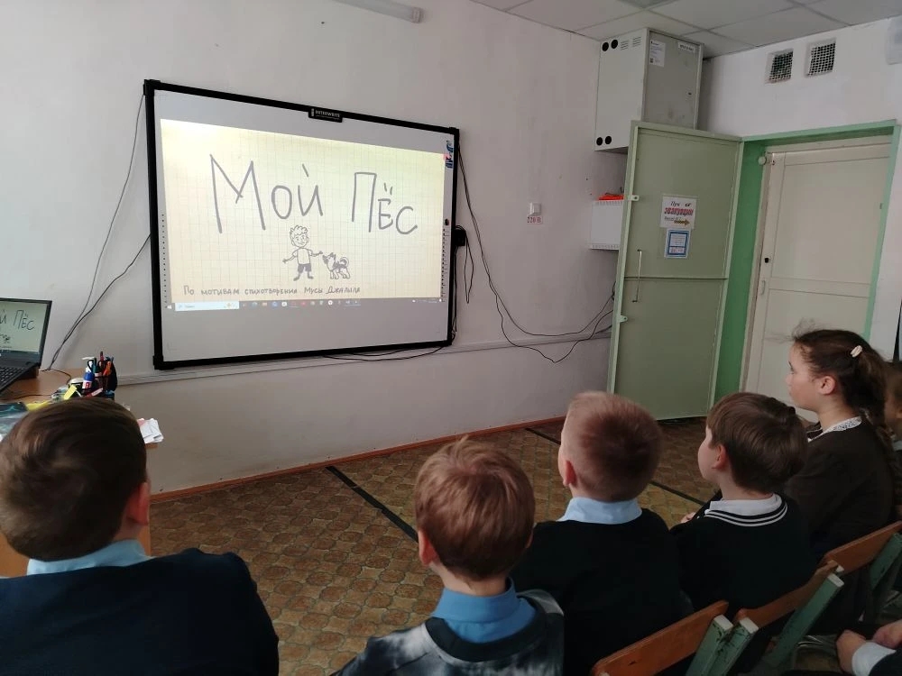 Мероприятие началось с просмотра популярных мультфильмов "Красная ромашка" и "Мой пёс", которые погрузили ребят в мир фантазии и доброты, характерный для произведений Джалиля.